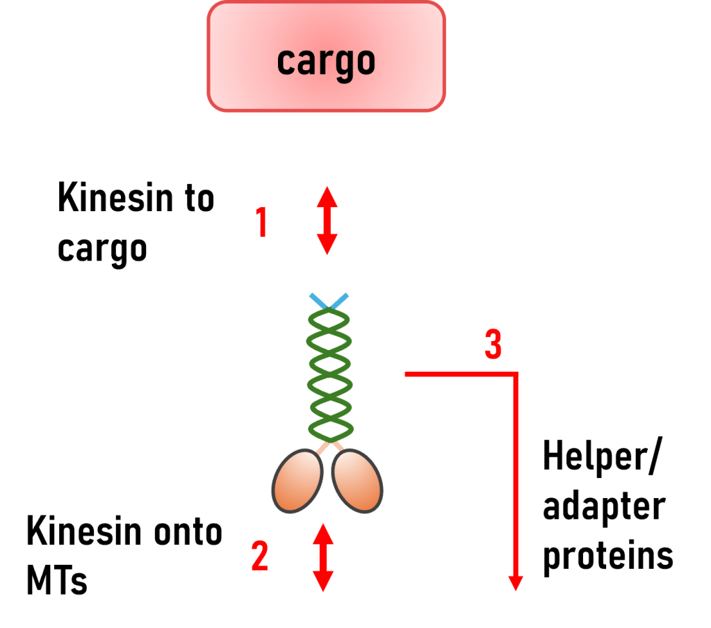 Proteins, organelles and vesicles are required to be moved around a neuron from sites of generation to where they are needed. This means that many proteins generated at the cell body need to be transported to the distal growth cone of synapse. This process is mediated by molecular motors, kinesin and dynein. How specific motors, cargos and adapters coordinate to achieve efficient transport and delivery is essential to understand for neuronal development, maintenance and plasticity.